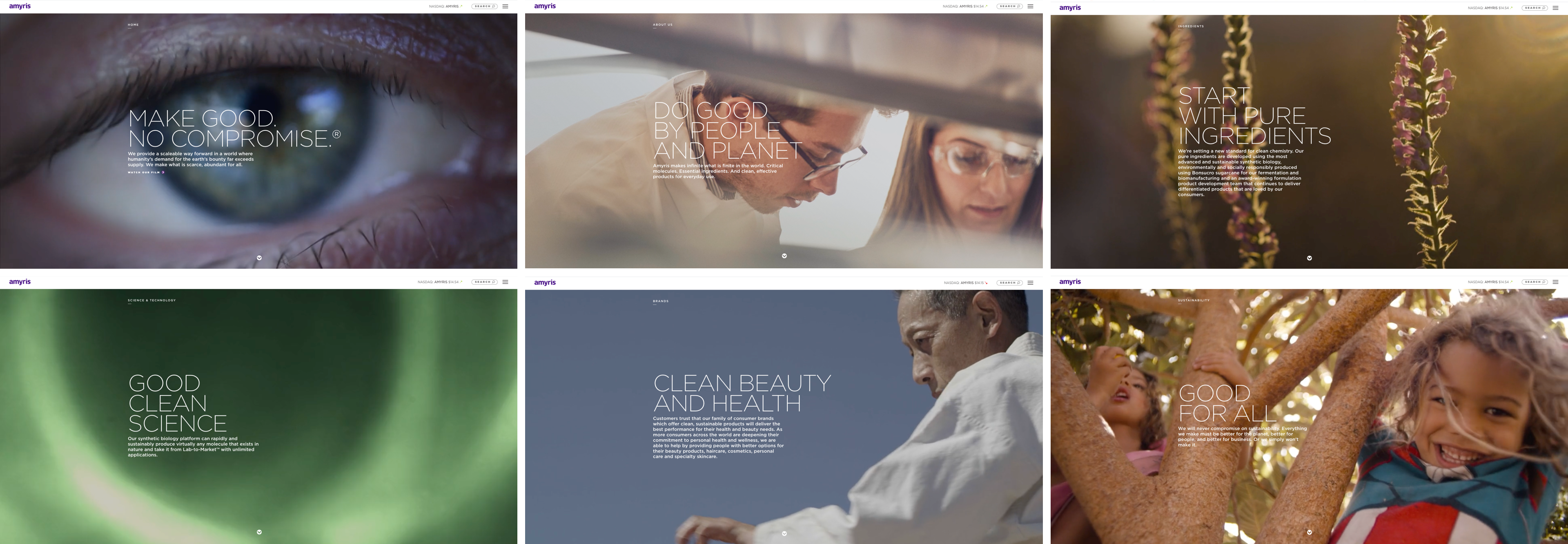 Amyris is a biotech company paving the way for a more sustainable future through its revolutionary biotech platform. Amyris' scaleable technology can create virtually any molecule in the universe through a fermentation process utilizing biologically engineered yeasts. To convey the company’s commitment to sustainability, we developed and launched a new brand identity, website and brand anthem film, highlighting the existing brand impact and its vast future potential.